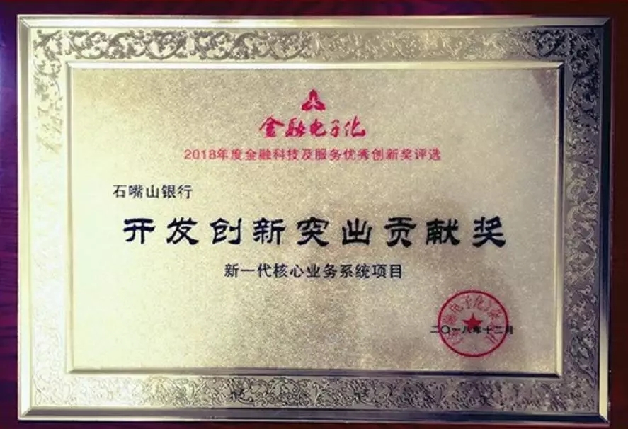 石嘴山银行“新一代核心业务系统项目”斩获“2018年度金融行业科技创新突出贡献奖”