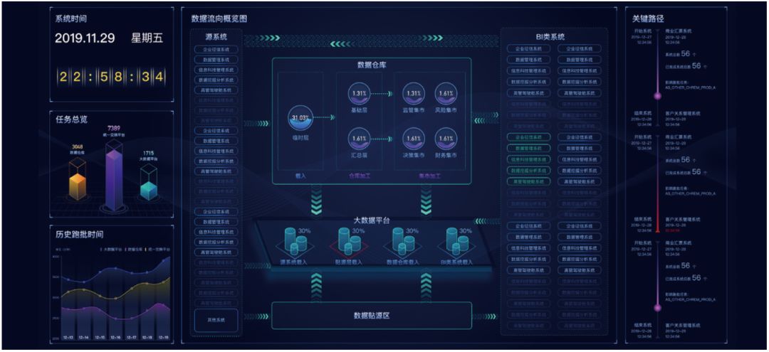 通过大数据分析技术,为银行提供实时业务监控能力,实现业务趋势预测和故障的预判,减少风险和损失的发生。具有如下优势:实时业务监控数据采集;动态、酷炫的可视化呈现、基于AI 的业务发展趋势分析;统一业务预警、故障排查定位;业务监控门户,整合运维监控体系等。