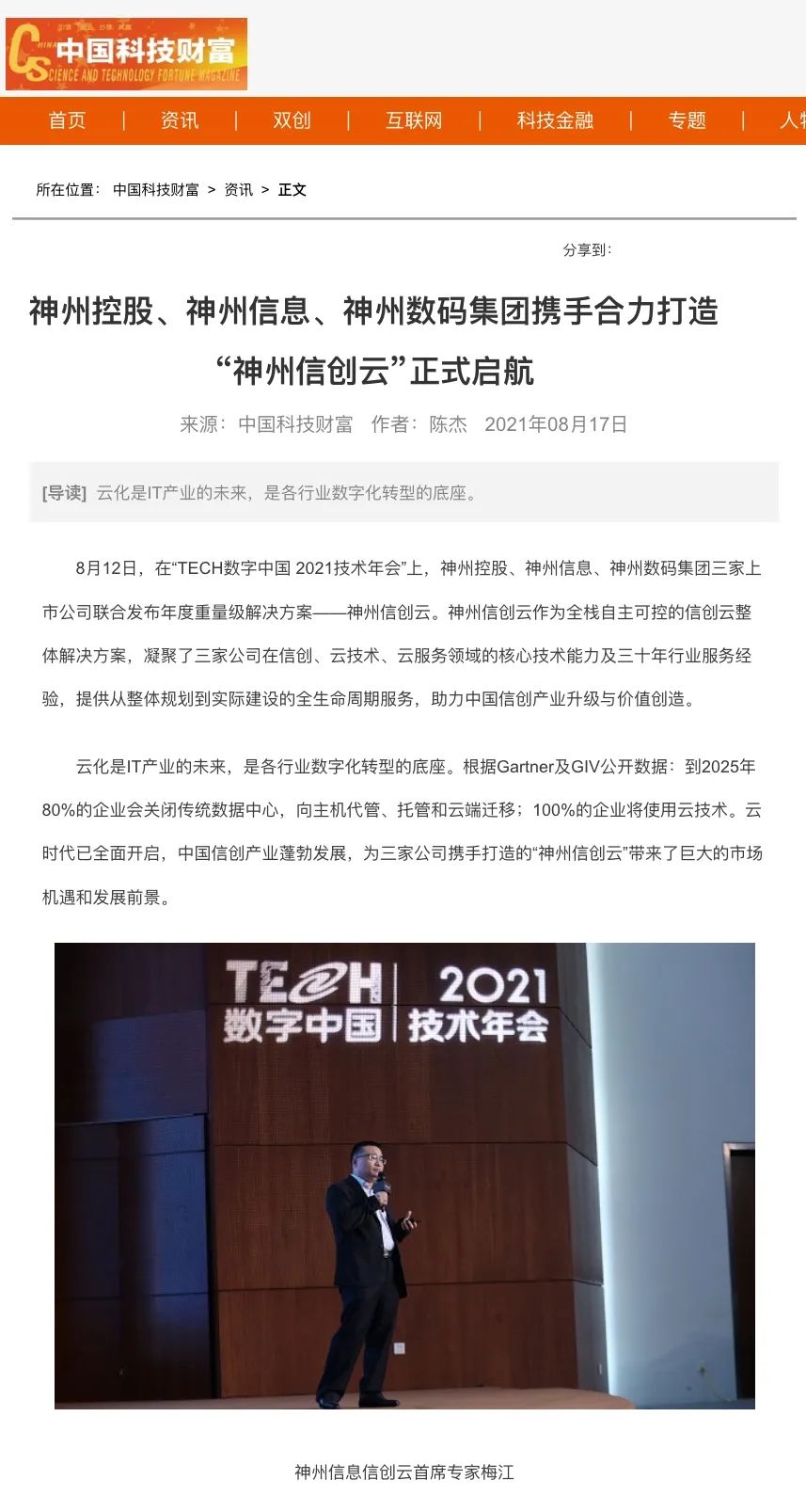 “数字中国 2021技术年会” 神州控股、神州信息、今年会集团联合发布 “神州信创云”