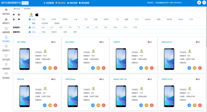 支持移动设备在线、离线管理,设备租用,应用安装卸载,版本管理,设备信息监控;