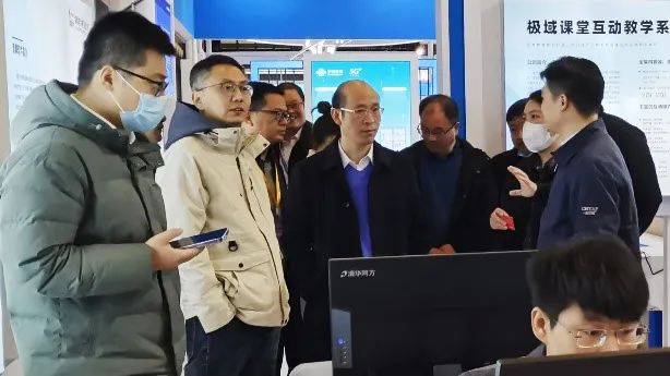 作为全省教育领域率先进行大规模国产化工作的金华市,此次展出的教育信创一体化解决方案吸引了参会的教育系统省、市领导和各个学校信息化教师前来参观体验,他们对展区里呈现的“教育信创一体化解决方案”和“国产化信息技术教学空间”都给予了热情的指导和建议。